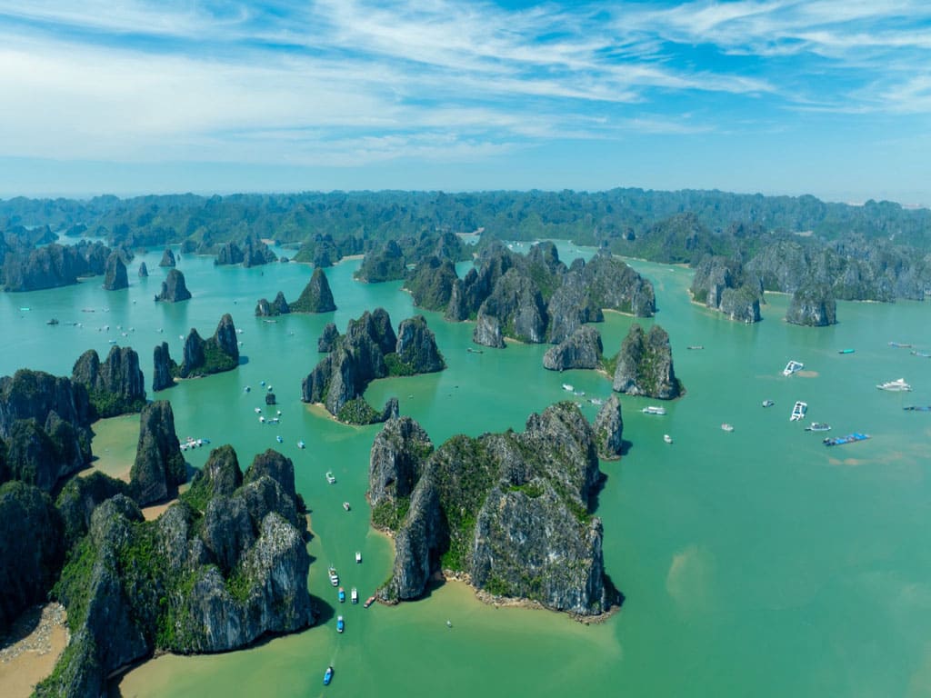Our luxury shuttle bus picks you up from your hotel in the Hanoi Old Quarter for a comfortable journey to Halong Bay via the new highway (approximately 2.5 hours). Those staying outside the Old Quarter are kindly requested to meet at the Hanoi Opera House at 08:15.