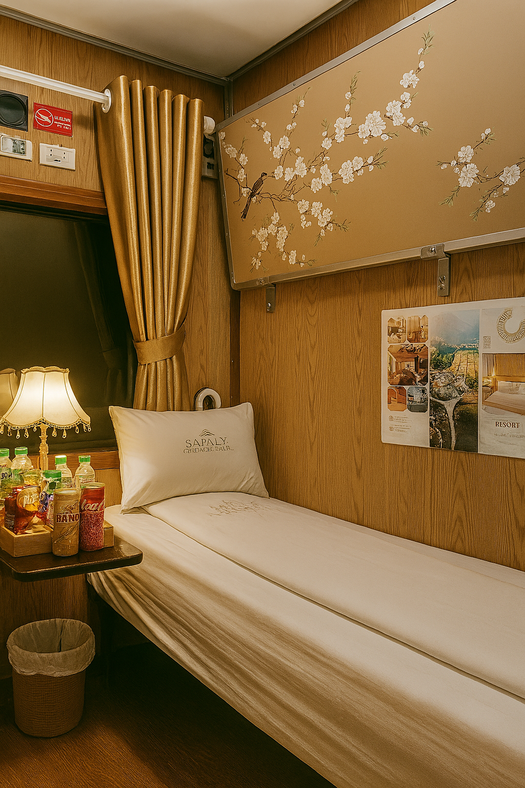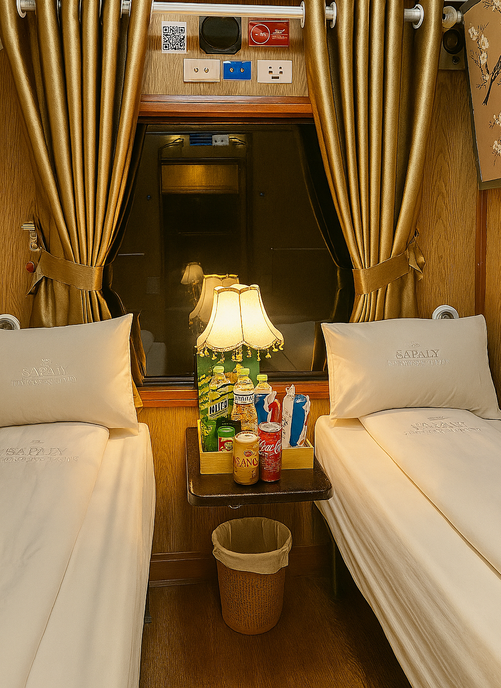 Sapaly Express Train is one of the most comfortable overnight trains on the Hanoi–Sapa route, offering two premium cabin types: Deluxe 4-Berth Cabins for families or small groups, and VIP 2-Berth Cabins for couples or travelers seeking extra privacy. All cabins feature soft sleeper beds, clean bedding, air-conditioning, and warm ambient lighting to ensure a relaxing night onboard.