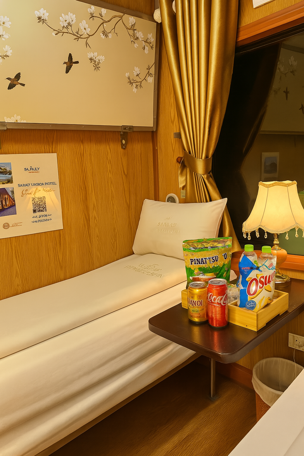 Modern Amenities – Soft sleeper beds, clean bedding, air-conditioning, warm lighting, and complimentary drinks.